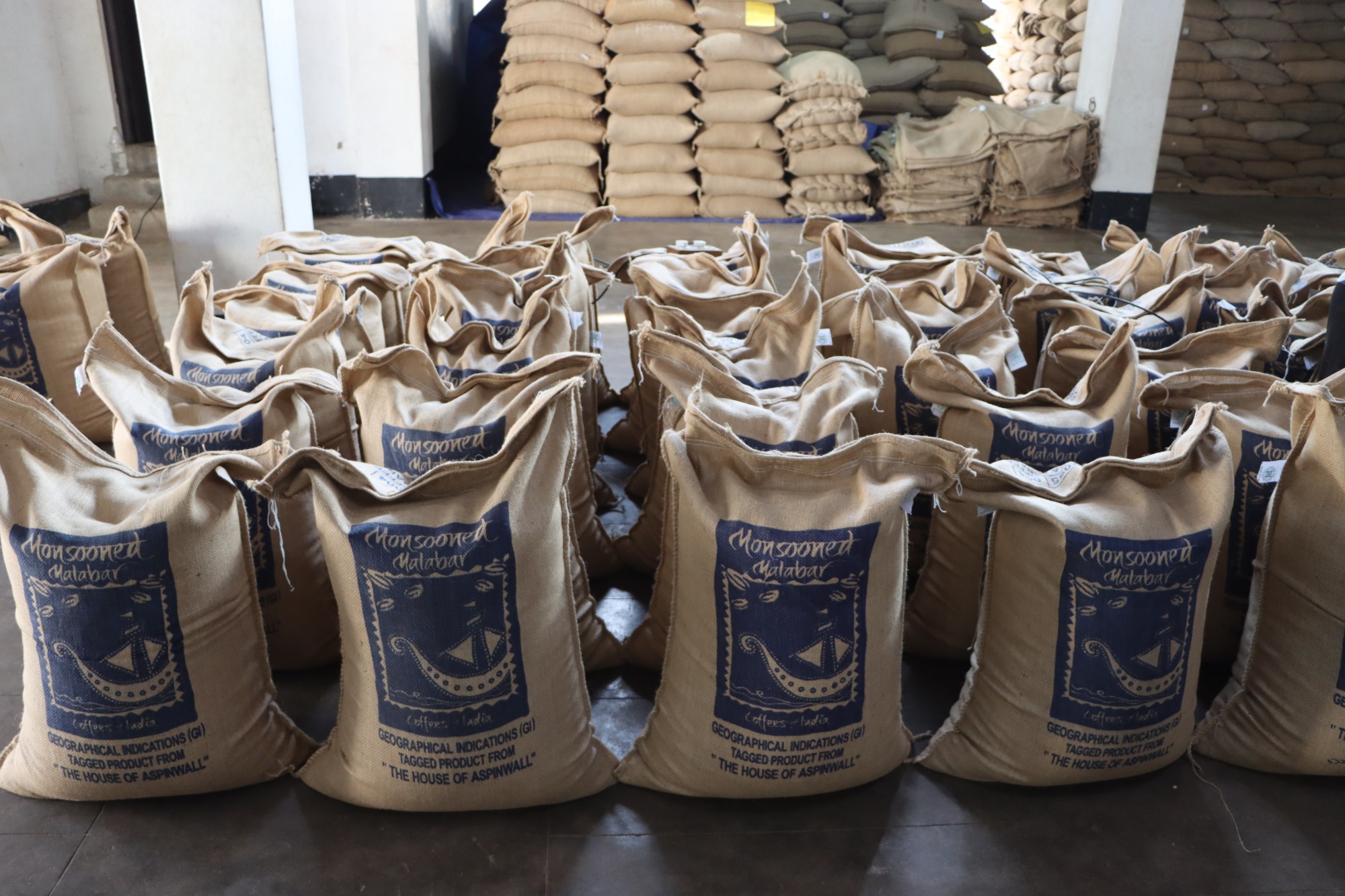 Im Kern der Kaffee-Division steht der monsungeprägte „Monsooned Coffee“, eine Spezialität, bei der Bohnen durch feuchte Küstenwinde reifen. In der Küstenstadt Mangalore betreibt Aspinwall eine hochmoderne Verarbeitungsanlage mit großen Lagerhallen, Farb-Sortierern, Hand-Garblers und einem eigenen Cupping-Labor. Die traditionelle Monsooning-Methode: Bohnen werden manuell umgelegt, damit sie das Meerklima aufnehmen. Dies sorgt für ein unverwechselbares, mildes Mundgefühl.