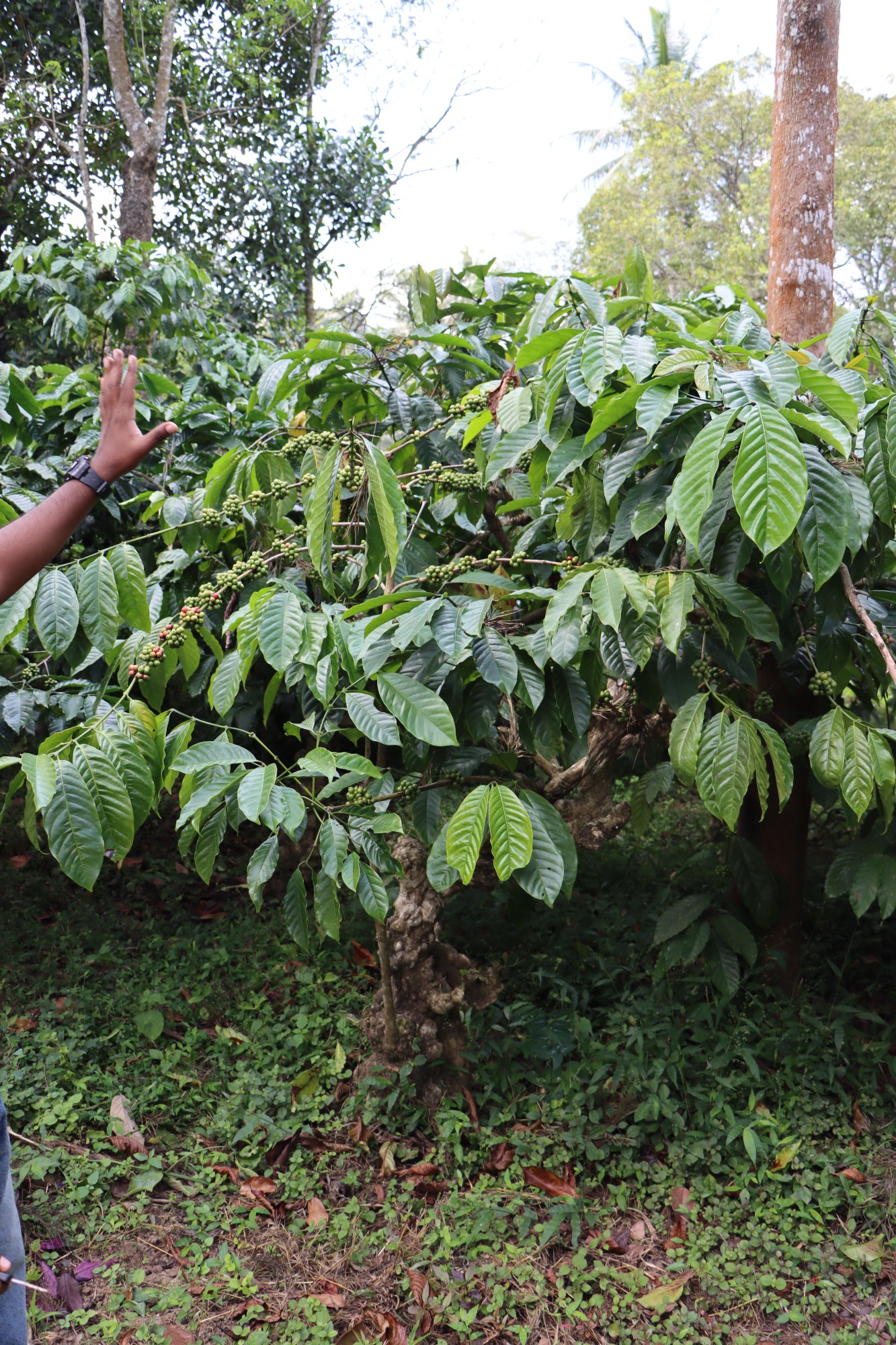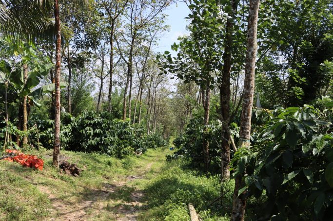 Unser Partner Jayakumari Estates befindet sich in Wayanad, Kerala, und wird von Sushena und ihrem Mann mit viel Leidenschaft betrieben. Die Plantage umfasst rund 40 Hektar und produziert ausschließlich Robusta-Kaffee, der vollständig bio-zertifiziert ist. Auf chemische Pestizide oder synthetische Dünger wird hier bewusst verzichtet – stattdessen stellt das Paar seinen eigenen Dünger aus Kuhmist und einer Mischung aus 20 verschiedenen Blättern, darunter Mangobaum- und Kurkuma-Blätter, her.