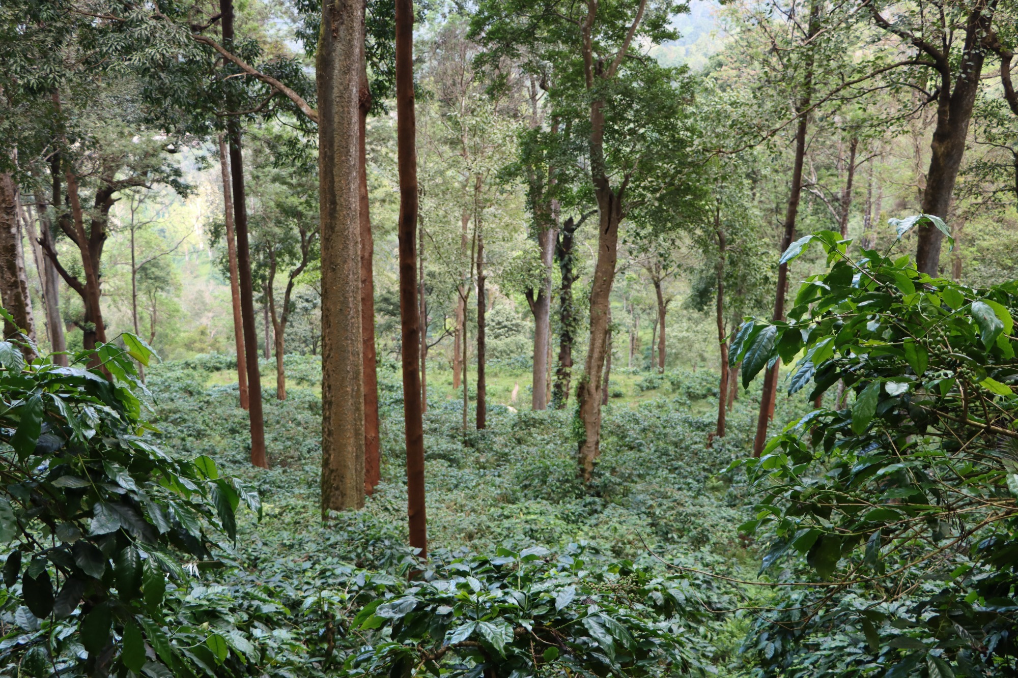 Mit über 2.500 Hektar Land auf vier biodiversen Farmen pflegt Sangameshwar ein reiches Ökosystem, das sowohl Arabica- als auch Robusta-Pflanzen umfasst. Die Farmen liegen in verschiedenen Regionen, unter anderem in Karadykan, Gungegiri, Attikan und Belur, auf Höhen zwischen etwa 900 und 1.650 Metern über dem Meeresspiegel.